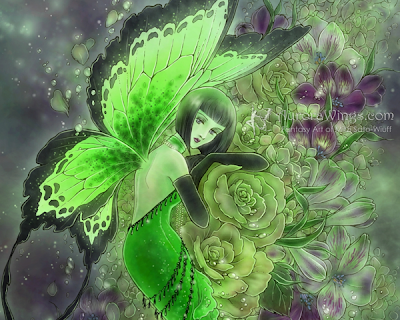 "La Fée Verte" is historically a name given to Absinthe. This is a piece done as a kiriban for a friend on deviantART who caught my homepage's 100,000th pageview. I usually ask for the flower and color scheme of choice for the gift art request. In the past, I've done pansy, wisteria, and white roses. This time, I was requested for lime green and black for the color scheme and any number of flowers that happen in these colors. The combination of lime green and black immediately conjured up Absinthe in my mind, and the idea for this piece was born. For the general design, I went with my doodle style and filled most of the space with flowers. The fairy just kind of showed up and posed on the roses. For some reason, I never could work on this piece for longer than an hour at a time during the coloring phase -- sometimes only for half an hour or less even. So this work progressed rather slowly, and that is the reason for no blog posts between March 2nd and now. I was also participating in a collaborative project for PSP Tube Stop with their Easter Scrapkit. Sometimes little projects that don't demand a lot of time and focus can be a wonderful break from making major commitment in time in the middle of multitude of things going on. I wasn't planning on making many contributions for the joint project this time around, but ended up making a lot of elements for it -- I guess I like drawing cuddly bunnies, fluffy chicks, and ...flowers. XD